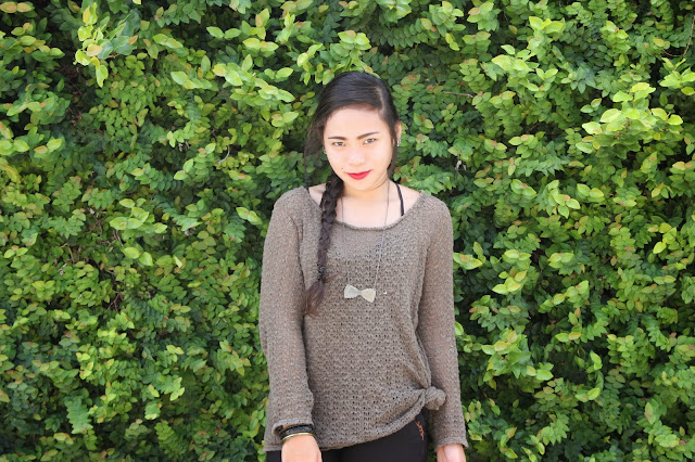 Found an old knitted sweater at my closet and been wondering where it came from lol. I decided to wore it and I paired it with plain black pants. I just tied it at the side so it will fit perfectly. I also grabbed my animal print sneakers to complete my get-up and have some comfy ootd. :) Did some braid on my hair to make the look better and added some accessories to add some spice within.